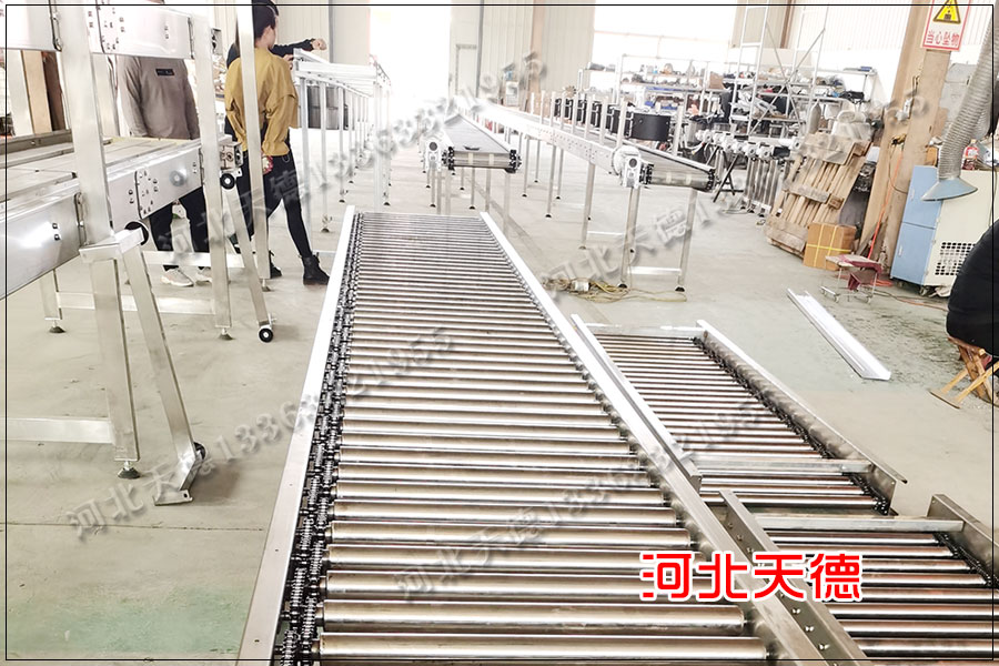 托盤(pán)輸送線滾筒輸送機(jī)的特點(diǎn):物流滾筒輸送線之間易于聯(lián)接過(guò)濾,可用多條滾筒輸送線與其它輸送機(jī)組成雜亂的物流輸送體系,完結(jié)各方面的輸送需求??蛇x擇積放滾筒完結(jié) 物料的堆積運(yùn)送。