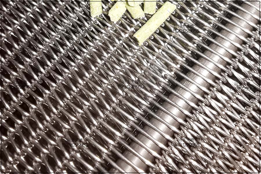 該客戶定制的不銹鋼金屬網(wǎng)帶用來輸送皮革,客戶選擇的無鏈條輸送,皮革輸送機兩端是托輥輸送,金屬網(wǎng)帶選擇不銹鋼304材質(zhì)鋼絲進行編織。
