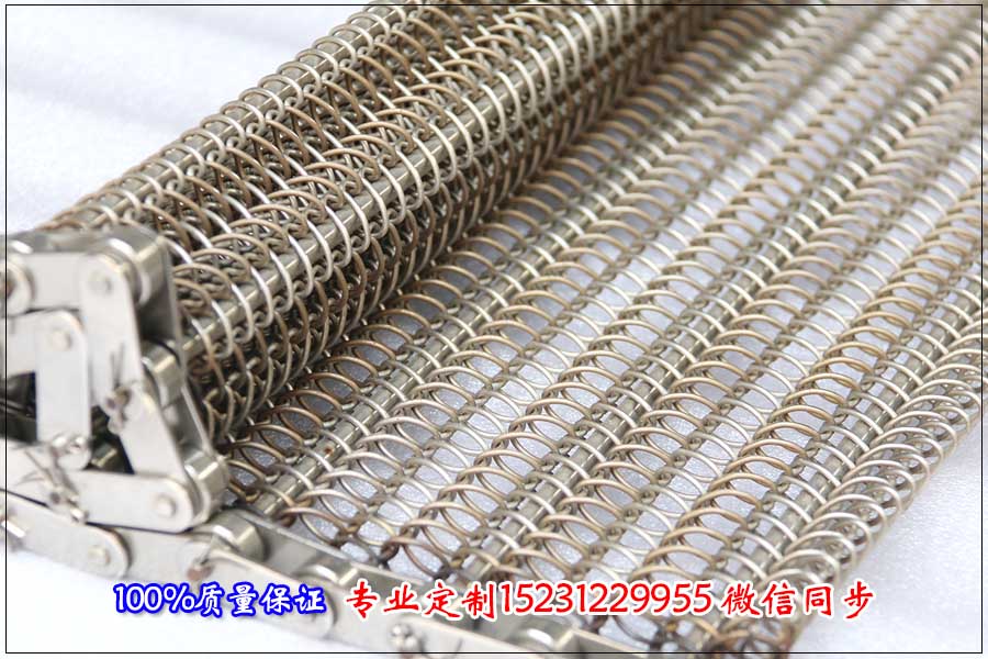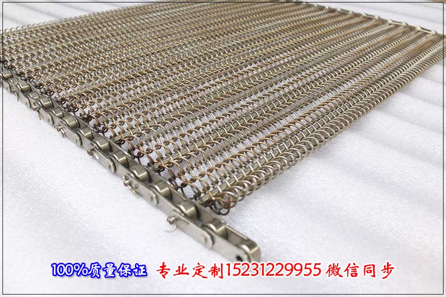 雙旋金屬網(wǎng)帶:是2根同方向的螺旋絲重疊再一起形成的一根,然后2根組合后的不同方向螺旋絲通過軋花穿條連接起來,在把金屬網(wǎng)帶拉平,就形成了交叉連接的雙旋金屬網(wǎng)帶,金屬網(wǎng)帶的小網(wǎng)格為3毫米,可適用于一些單旋輸送網(wǎng)帶因物料尺寸小而不能適用的情況,另外一種用途就是經(jīng)過特殊的表面處理后可以做裝飾用。