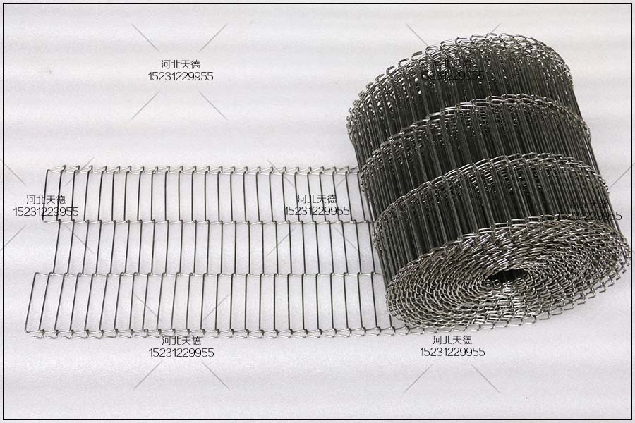 3、扁絲型金屬網(wǎng)帶:此網(wǎng)帶采用軋扁絲制作用曲軸型穿條連接,使各個(gè)螺旋金屬絲的位置得正確的定位。減少的延伸度。加工過程中做工精細(xì),表面舒展平整,兩邊平行,材質(zhì)上等優(yōu)良。