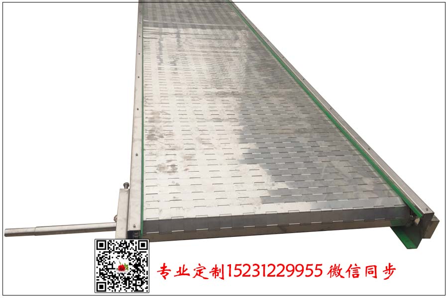 順便我們介紹一下啤酒機(jī)械輸送網(wǎng)帶的詳細(xì)作用:啤酒機(jī)械輸送網(wǎng)帶采用節(jié)距為50mm、33mm的不銹鋼絲鏈塊和δ=2.5mm鏈片,通過直徑Ф5mm、直徑Ф7mm的不銹鋼長軸連接組成的網(wǎng)柵式模塊化結(jié)構(gòu),使用抗拉強(qiáng)度高,耐熱透水性高、上下層溫差小,同時(shí)運(yùn)行阻力小不易跑偏、不易磨損,輸送連續(xù)平穩(wěn)不會倒瓶,整體不銹鋼網(wǎng)帶 材料不易侵蝕,模塊化的結(jié)構(gòu)設(shè)計(jì)裝配簡樸、拆卸利便,制造精度高因而節(jié)距積誤差小,與傳動軸嚙合良好不爬齒。