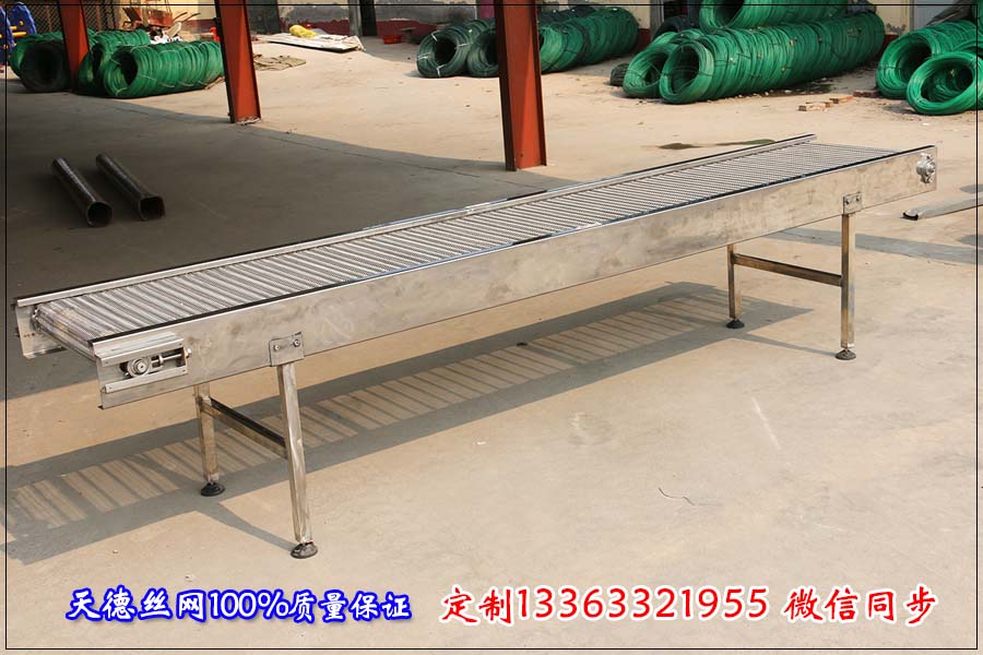 輸送形式有:水平直線輸送、提升爬坡輸送、轉(zhuǎn)彎輸送等多種輸送形式,根據(jù)需要可以在不銹鋼輸送帶的橫截面上焊擋板、鏈條兩側(cè)加裝擋板等附件,能滿足各種輸送行業(yè)的要求。 鏈板輸送機(jī)以標(biāo)準(zhǔn)頂板鏈為承載面,由馬達(dá)減速機(jī)做為動(dòng)力輸送,輸送帶在專用的導(dǎo)軌中運(yùn)行,根據(jù)生產(chǎn)工藝流程的不同鏈板可分為轉(zhuǎn)彎、直線或提升型,還可實(shí)現(xiàn)自動(dòng)輸送線、分別包裝流水線等。